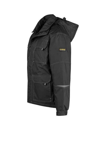 Zoek je goede werkkleding om jezelf goed warm te houden tijdens het werken in de bouw, in de tuin of bij het klussen rond het huis. Dan is de Caton Werkjas Zwart een uitkomst. Hiermee werk je het hele jaar door. De werkjas is wind- en waterdicht. De naden zijn getapet. De warme teddy voering is uitneembaar en de jas is voorzien van een nylon binnenvoering. De Caton heeft een vaste capuchon. Hierdoor lekt er geen regen door de kraag. De jas heeft een dubbele sluiting met rits en klittenbandsluiting. De buitenstof is van 300D oxford polyester. Praktisch zijn de opbergzakken afsluitbare zakken op de heupen en de borst. Op de borst, rug en armen heeft deze jas reflectie details.