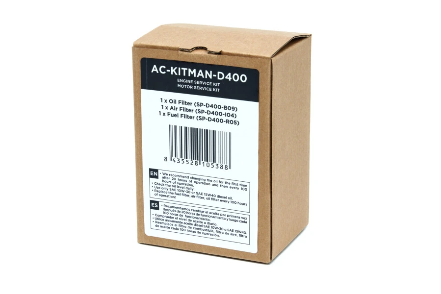 De set bestaat uit een oliefilter, een brandstoffilter en een verstuiver.