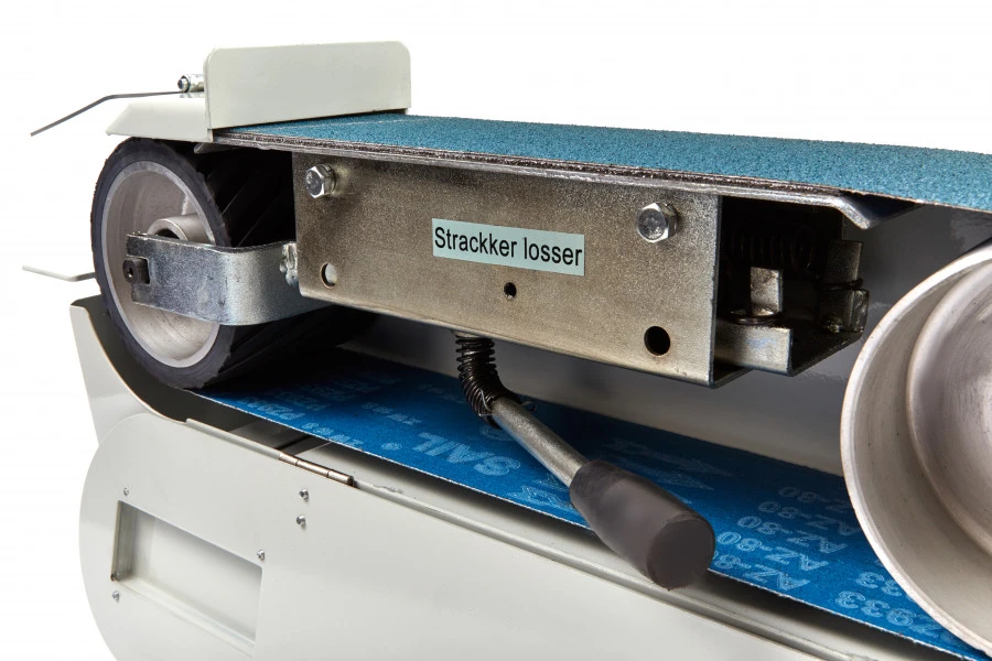 Deze bandschuurmachine is uiterst geschikt voor het schuren van harde metalen en past dus perfect in zowel kleine werkplaatsen als bij grotere bedrijven. Dankzij één schuurband geniet je van een optimale balans tussen kwaliteit én flexibiliteit. Daarbij monteer je de schuurband snel en gemakkelijk met of zonder sokkel op de voet, waardoor je snel en overzichtelijk werkt. Tenslotte beschikt het apparaat over een stevige, stalen structuur voor een langere levensduur en een extra stabiele basis tijdens het schuren.