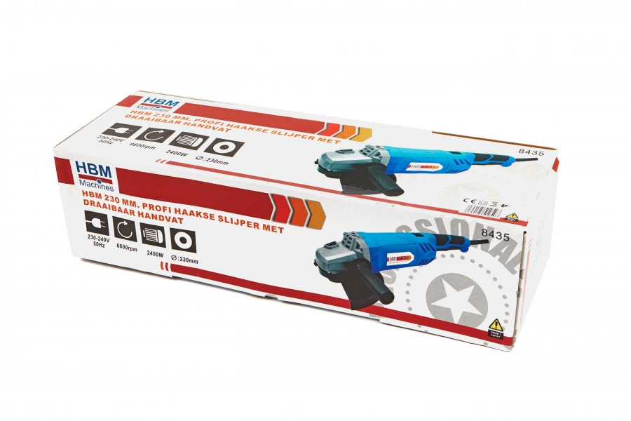 Over de HBM 230 mm Profi Haakse Slijper met Draaibaar Handvat