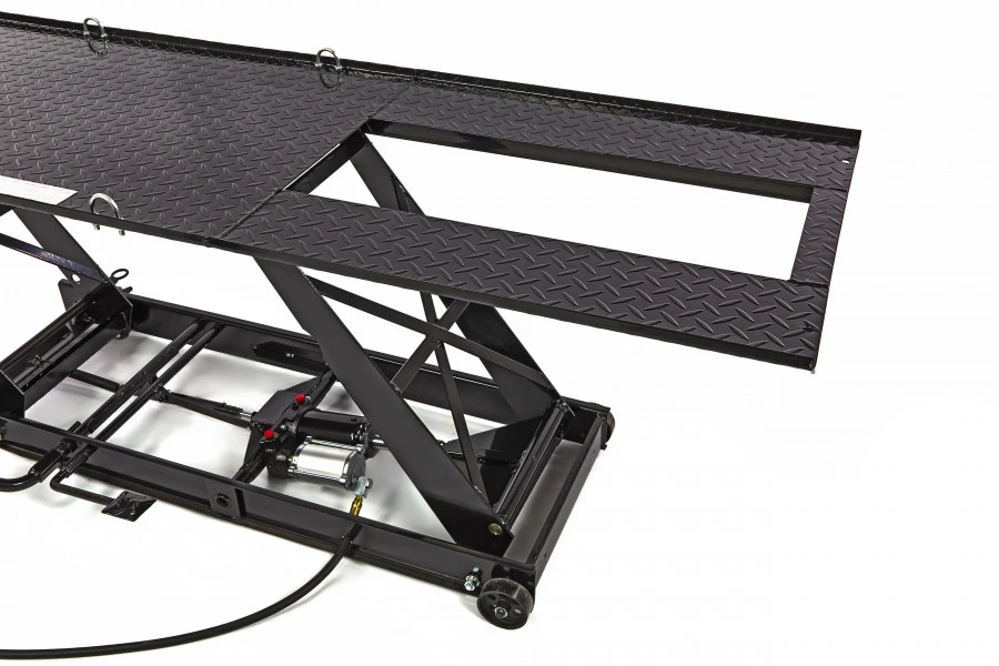 Met de HBM 300 Motorheftafel krijg je je motor altijd op de juiste werkhoogte. En om het werken extra gemakkelijk te maken, is de brug op twee manieren te bedienen. Je kunt het platform namelijk met en zonder luchtvoorziening omhoog brengen. Voor extra veiligheid is de hefbrug uitgerust met een doorrijdstop en valbeveiliging. Bij de oprijplaat bevindt zich een uitsparing met een te verwijderen plaat voor het uitnemen van het achterwiel. Als je aan je motor werkt, wil je die natuurlijk op een prettige hoogte hebben staan. Daarvoor gebruik je deze HBM 300 Motorheftafel. Behalve voor een betere lichaamshouding zorgt de hef- en poetstafel er ook voor dat je eenvoudiger bij moeilijk bereikbare motoronderdelen komt. De hefbrug wordt geleverd inclusief CE-certificaat en is geschikt voor grote motoren, bromfietsen en scooters. Gebruik voor het hydraulische bedieningssysteem uitsluitend hydraulische krikolie van goede kwaliteit.