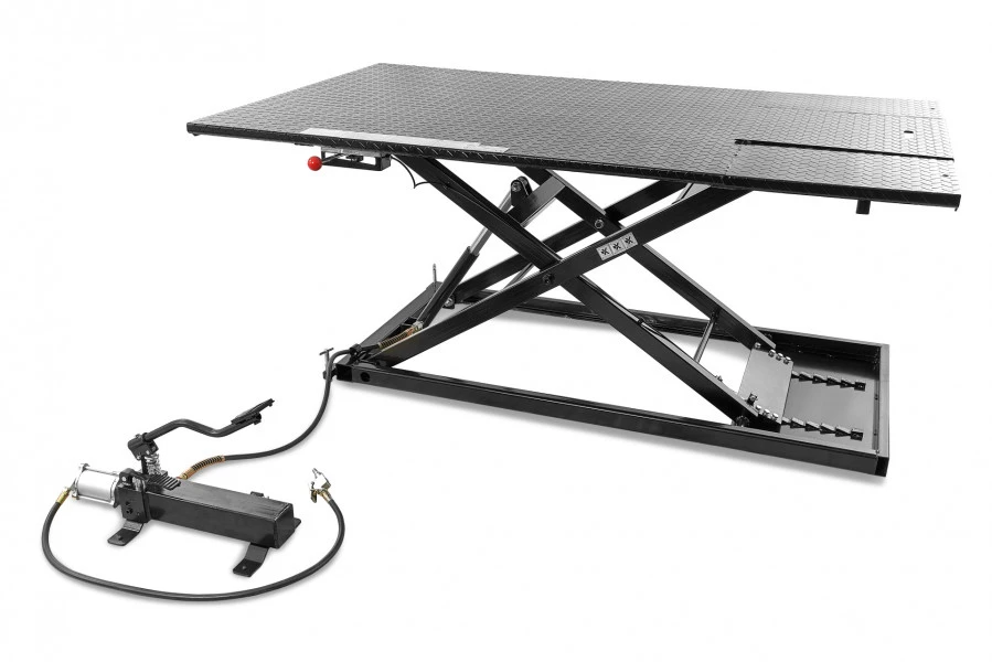 Als je sleutelt aan verschillende soorten motorvoertuigen, mag de HBM 400 Quad en Trike Motorheftafel niet in je werkplaats ontbreken. Deze hefbrug kan je niet alleen gebruiken voor onderhoud aan grote quads en trikes, maar ook aan zitgrasmaaiers en vergelijkbare voertuigen. Hij is voorzien van een dubbel hefsysteem. Om de tafel weer te laten dalen, druk je voorzichtig en met beleid het ontspanpedaal in.
