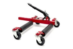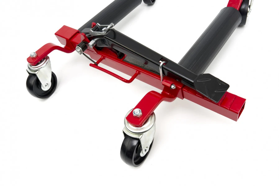 Je gebruikt de mover voor banden tot 18 inches breed. Daarbij ondersteun je de wagen makkelijk door middel van bakstenen, waardoor je een nog bredere diameter met dit systeem optilt. Je zet de wagen weer op de grond door de hendel op het pedaal aan te trekken. Hierdoor komt de voetratel vrij en duw je de armen van de mover automatisch uit elkaar. De stalen basis garandeert een uitstekende absorptie van schokken en zware gewichten. Stevige wielen aan de onderzijde van de automover geven je voldoende bewegingsvrijheid tijdens het klaarzetten en gebruiken van dit systeem.