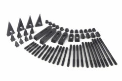Geleverd in mooie stalen opbergrek. Bevat t-moeren, spanbouten, verlengmoeren, moeren, opspanbouten, opspanblokken en kikkerplaten. Complete set.