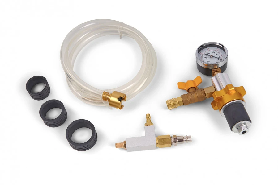 De 6 Delige koelsysteem afpers en vul set is geschikt voor nagenoeg alle gangbare merken. Dit wordt mogelijk gemaakt dankzij de meegeleverde adapter. De adapters kunnen circa 4 mm uitzetten. De set is gemaakt van een slijtvast materiaal en is hierdoor bestand tegen intensief gebruik. De koelsysteem afpers en vul set bestaat uit zes delen en zorgt er daardoor voor dat je direct aan de slag kunt gaan met het uitvoeren van de werkzaamheden.