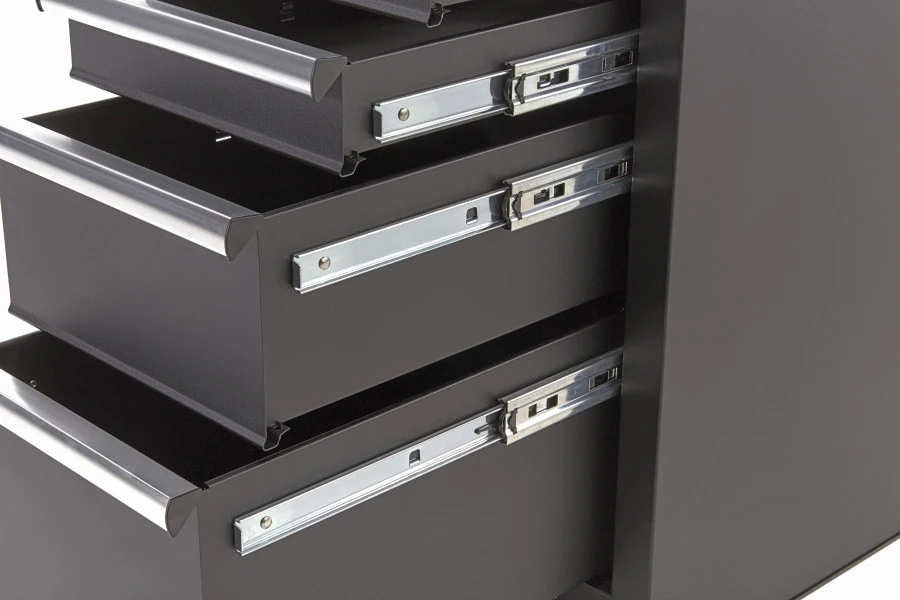 De kast is voorzien van een speciale poedercoating die het geheel bestand maakt tegen krassen en slagen. Daarbij open je alle lades van deze kast makkelijk 100%. Hierdoor maak je van alle beschikbare ruimte gebruik en richt je je werkplaats efficiënter in.
