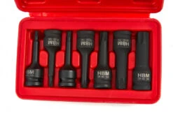Deze zevendelige lange Torx slag- of krachtdoppenset met 3/8″ opname, zijn extra sterk. Hierdoor zijn deze torx krachtdoppen perfect geschikt voor gebruik op luchtgereedschap, een inbussleutel of een dopsleutel.