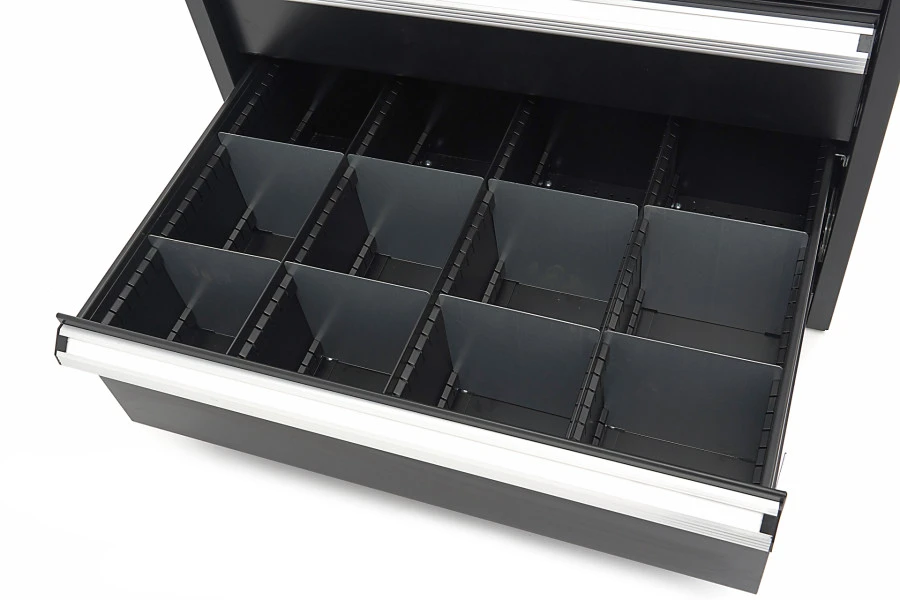 Deze zeer stevige professionele gereedschapskast is bedoeld voor de professionele werkplaats, maar is ook geschikt voor de serieuze doe-het-zelver. De acht ruime laden bieden veel opbergruimte voor gereedschap en onderdelen. De kast wordt geleverd met een los bovenblad met opstaande rand dat dienst kan doen als werkblad. Kom je nog ruimte tekort? Dan kun je er ook nog een bovenkast op plaatsen. De kast is er stevig genoeg voor.