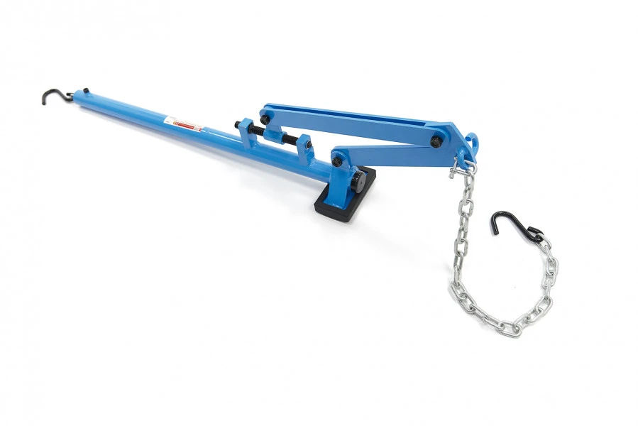 Met deze set is het demonteren van draagarmen voor verschillende toepassingen een koud kunstje. De set is geschikt voor zowel het demonteren als het lossen van draagarmen aan de veerpoot. Het robuuste stalen frame en de grote bewegingsvrijheid van dit systeem maken het een essentieel stuk gereedschap voor zware werkzaamheden. Ondanks zijn stevige structuur zijn de armen en kettingen relatief wendbaar en licht.