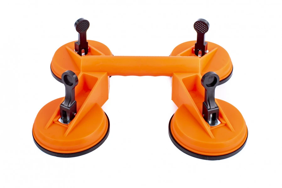 Een glasdrager met vier vacuüm zuignappen en een stevig kunststof frame. Hiermee creëer je in een handomdraai een muurvast handvat op ruiten, metaalplaten en elk ander recht en glad object. Werk sneller en verminder de kans op glasschade dankzij deze robuuste en betrouwbare glasdrager. De vier zuignappen van deze drager brengen het maximale draaggewicht ervan op 150 kilo, wat hem ook geschikt maakt voor de allergrootste ruiten en extra dik glas of metaal.