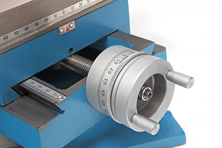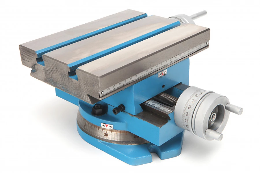 Met behulp van de draaibare knop zet je de nonius van de zwengel op nul. Dit doe je zodra je start met het boren met deze kruistafel van HBM. Je verplaatst de tafel makkelijk met behulp van een zwengel en voordat je het materiaal boort, is het slim om voor te gaan boren met een boor van 2 mm kleiner dan de beoogde boor.