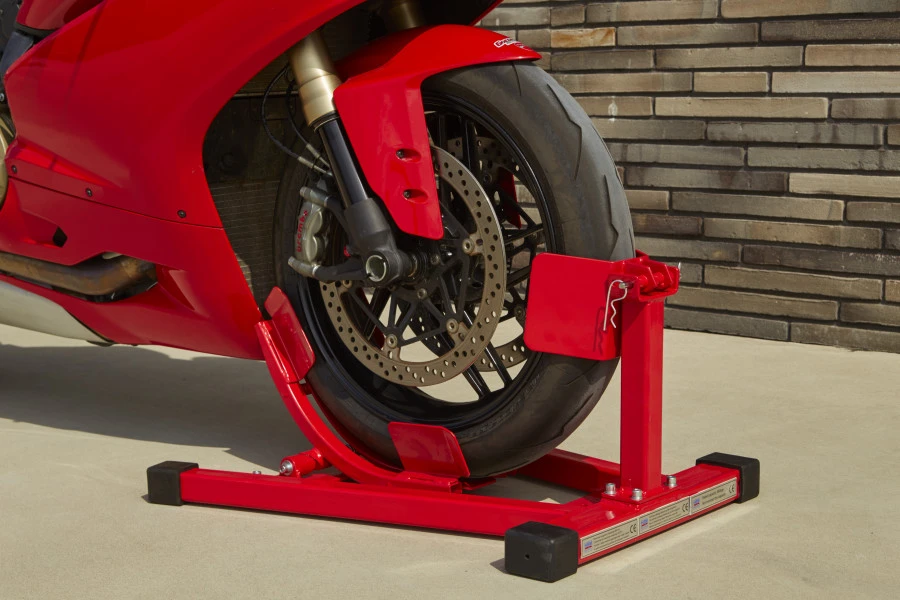 Je zet elke motorfiets of brommer stevig vast dankzij deze professionele klem met compact design. Bepaalde voertuigen vereisen extra stabiliteit voor een degelijk onderhoud of herstellingen. Dankzij deze klem staat het wiel van je motor of bromfiets altijd vast, zodat het risico op een val erg klein is.