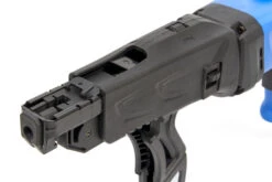 Deze automaat is bedoeld voor gipsplaatschroeven die met een band aan elkaar bevestigd zijn met een lengte van 9 tot 55 cm. Deze band met schroeven worden automatisch door de machine voortgetrokken en de schroeven worden één voor één in lijn gelegd met de kruiskop bit in de machine. Het enige wat jij nog hoeft te doen is duwen en de trekker overhalen! Er worden 3 verschillende kruiskop (Phillips) maten bits meegeleverd met deze schroefmachine.