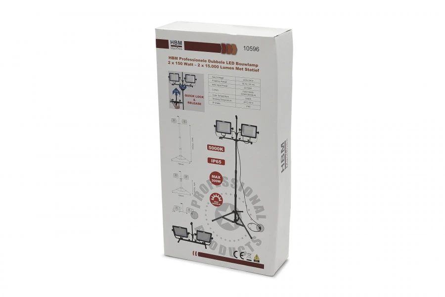 Ga voor optimaal licht op elke plek en in elke hoek met de HBM professionele dubbele led bouwlamp 2 x 150 watt – 2 x 15.000 lumen met statief. Deze professionele bouwlampen set geeft maar liefst 15.00 lumen aan licht en een kleurtemperatuur van 5.000 Kelvin. Dat betekent dat, waar en wanneer je ook aan het werk bent, je altijd bij goed licht werkt.