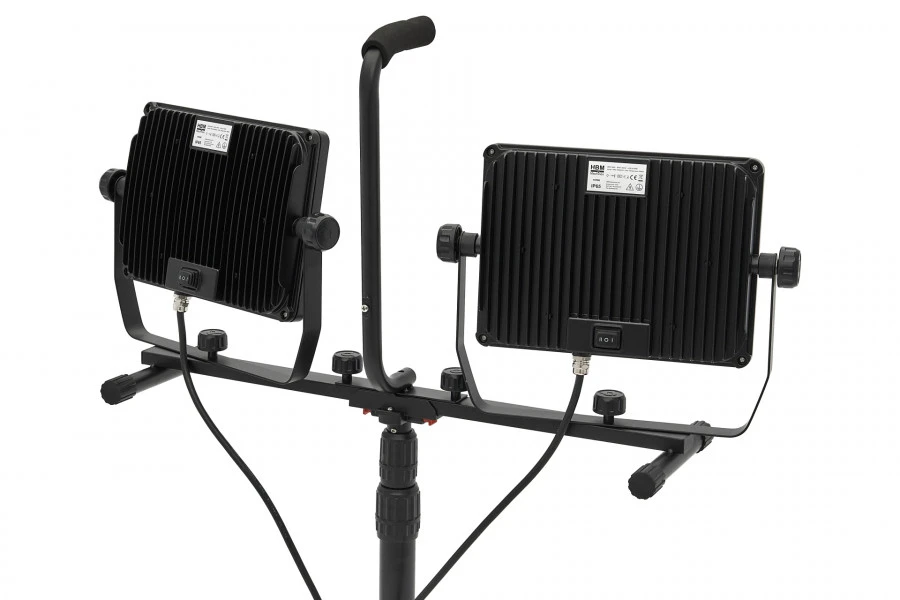 Over de HBM professionele dubbele led bouwlamp 2 x 150 watt – 2 x 15.000 lumen met statief