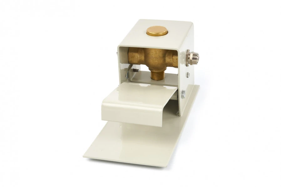 Dit universele voetpedaal voor straalcabines van HBM is gemaakt van sterk gepoedercoat staal. Je plaatst ‘m eenvoudig op de grond bij de (zand)straalcabine en bevestigt de slang aan de twee zijkanten. Dit voetpedaal heeft natuurlijk een luchtingang en een luchtuitgang. De werking van het voetpedaal is mechanisch. Je hoeft er dus alleen maar je voet op de knop aan de bovenkant te zetten om het pedaal z’n werk te laten doen. Het voetpedaal is universeel, hij past dus bij elke straalcabine.